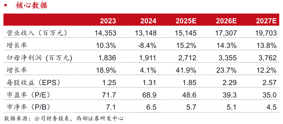 我们预计公司2025年-2027年归母净利润为27.12亿元、33.55亿元、37.62亿元,同比增长41.9%、23.7%、12.2%,维持“买入”评级。