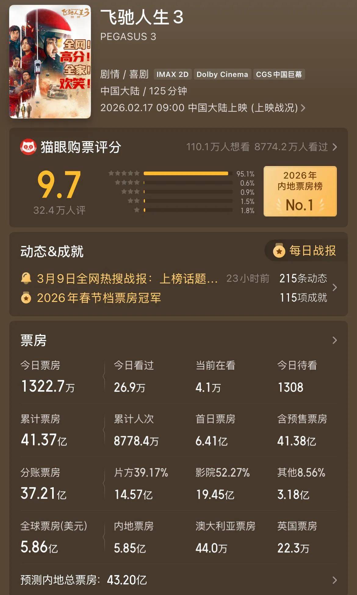 作为今年春节档的票房冠军,韩寒执导、沈腾挑大梁的这部作品,可以说是获得了众多网友的好评与追捧,票房也是节节攀升,凭借着该片,沈腾老师的个人总票房已经达到了411亿+,在国产电影票房榜地位不可撼动。
